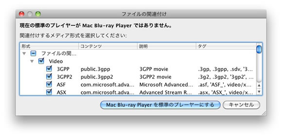 Mac Blu-ray Playerのファイル関連付けを調整できます、また標準プレーヤーにするも可能。
