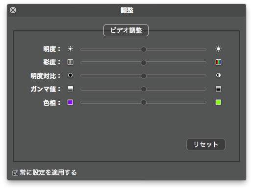 明度・彩度・明度対比・ガンマ値・色相などを調整する。