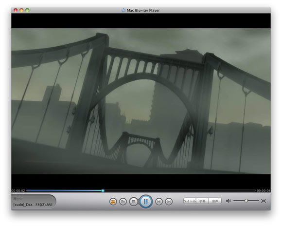 Macで初めてBlu-rayを再生する時、このようにロード画面が表示されます。この動作はお客様のBlu-ray Discを解析しているという提示です。市販のBlu-ray以外のBlu-ray Disc(ご自分で製作されたBlu-ray Disc)を再生する時も表示はありますが、設定画面の中で「インターネットチェックをオフにする」選択が可能です(市販のBlu-rayを初めて再生する際はからなずオンにしてください)。Mac Blu-ray Playerを使って、Mac ブルーレイ以外のフォーマットの再生は解析画面が表示されません。