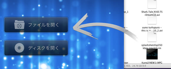 方法1:ファイルを開くをクリックして、動画ファイルを選択する、「オープン」のボタンをクリック、再生が始まる。