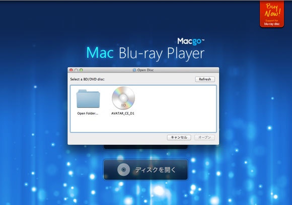Mac Blu-ray Playerはバージョン1.11.0から新しい「ディスクを選択」のウィンドウを使用はじめた。これから直接ブルーレイディスク、またはDVDを再生できますようになりました。