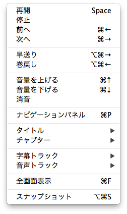 | 前へ・次へ | プレイリストの当前ファイルの前後ファイルを選択 |